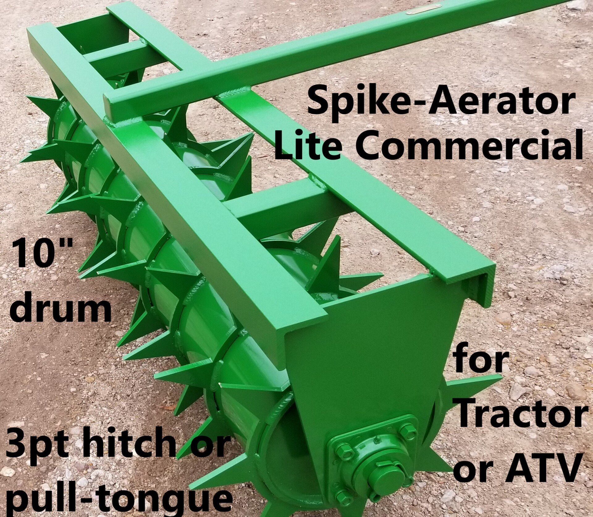 HD Commercial Grade Spike-Aerators are built on a 3/8” thick, 16” diameter drum. The 2" solid steel axle is supported by quality grease-able bearings. Depending on size, the frame may be built with 3x5, 4x6, or 6x8” rectangular tubing with cross-bracing and gusset supports as necessary to ensure exceptional strength, smooth operation and durability.